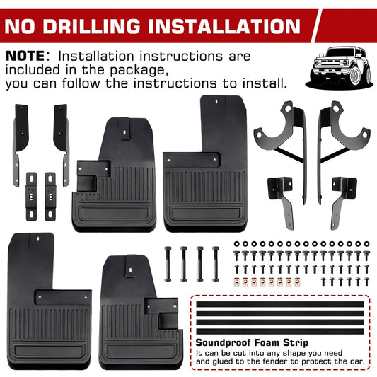 4pcs Mud Flaps Splash Guards for Ford Bronco 2 / 4 Door 2021 2022 2023