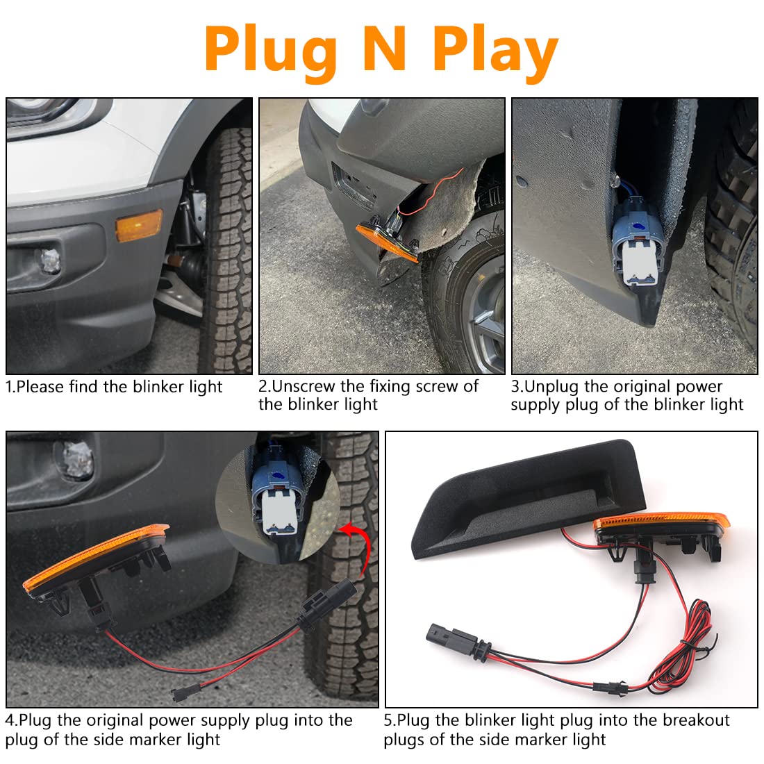 NEW Upgraded Plug & Play LED Side Marker Lights Warning Lighting for Ford Bronco Sport 2021 2022 2023